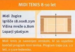 Otroci stari od 8-10 let v teniški šoli MIDI TENISA spoznavajo teniško igro, osnovne udarce ter se pripravljajo na prehod na pravo velikost igrišča: